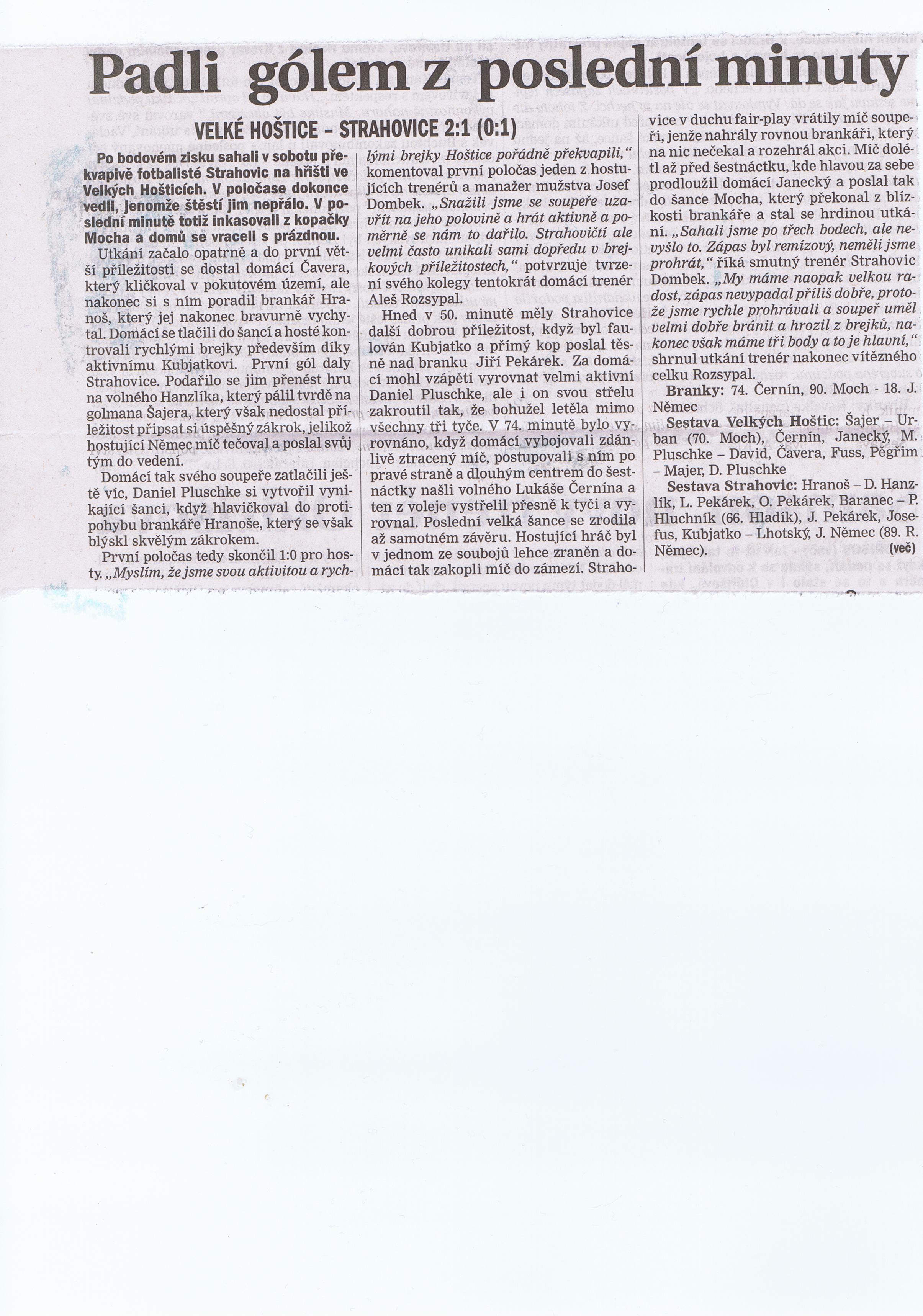 FK Velké Hoštice - SK Meteor Strahovice |